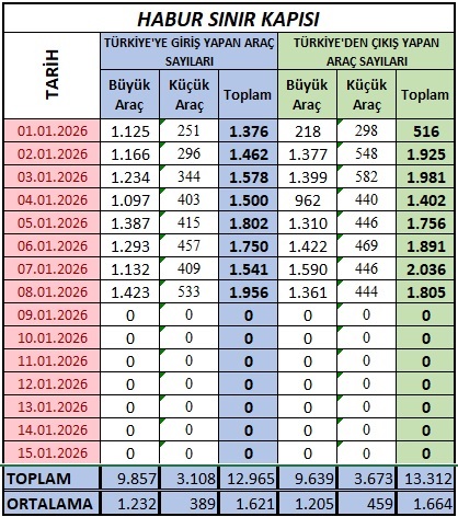 2026 Yılında Giriş-Çıkış Yapan Araç Sayıları 2025 Yılında Giriş-Çıkış Yapan Araç Sayıları 2024 Yılında Giriş-Çıkış Yapan Araç Sayıları 2023 Yılında Giriş-Çıkış Yapan Araç Sayıları