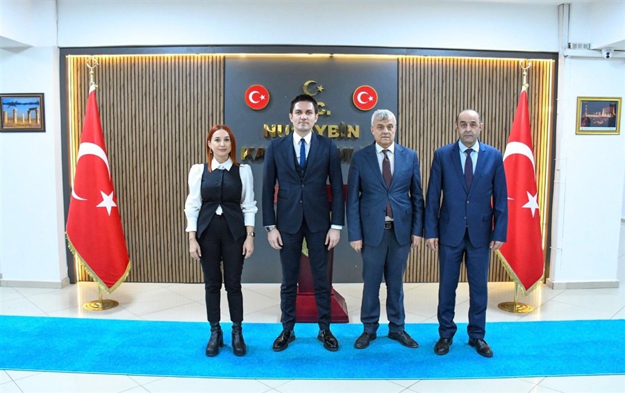 04.02.2026 tarihinde yapılan ziyaret kapsamında Nusaybin Kaymakamı Sayın Evren ÇAKIR ve Nusaybin Cumhuriyet Başsavcısı Sayın Murat BULUT ile bir araya gelen Bölge Müdürümüz, sınır kapısının mevcut durumu, işleyişi ve yürütülen çalışmalar hakkında değerlendirmelerde bulunmuştur.