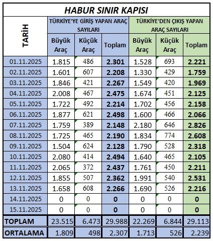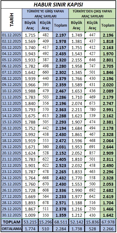 2025 Yılında Giriş-Çıkış Yapan Araç Sayıları 2024 Yılında Giriş-Çıkış Yapan Araç Sayıları 2023 Yılında Giriş-Çıkış Yapan Araç Sayıları