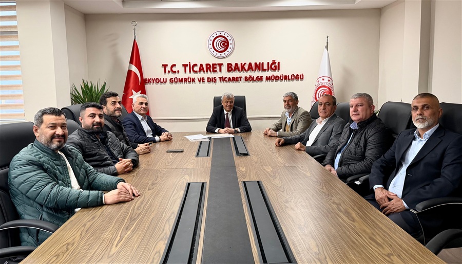 26 Şubat 2026Nusaybin Ticaret Borsası Başkanı Sayın Necdet AKTAŞ, Meclis Başkanı Sayın Abdulhakim AYTİMUR, Yönetim Kurulu Başkan Yardımcısı Sayın Abdulhalim AYDIN, Meclis Üyesi Sayın Yılmaz BARIŞ ve Nusaybin ihracatçılarından oluşan Heyet, Bölge Müdürümüz Sayın Hüseyin ŞANVERDİ’yi Makamında ziyaret etti.
